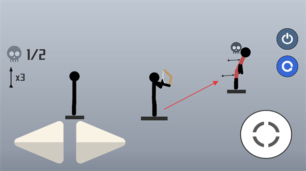 3、点击右侧的投掷按钮,发射武器攻击目标,若一次未击中,可调整角度再次尝试。