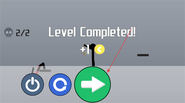 4、成功击杀所有目标后,显示LevelCompleted!,点击绿色箭头按钮进入下一关,同时获取金币奖励。