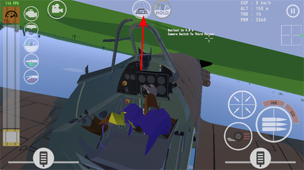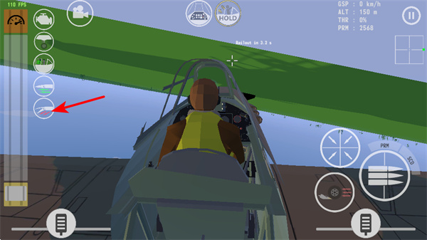 1、在飞机驾驶界面,点击上方的HOLD按键,可启用飞机的保持功能,帮助飞机在特定状态下稳定飞行,便于新手操控飞机。