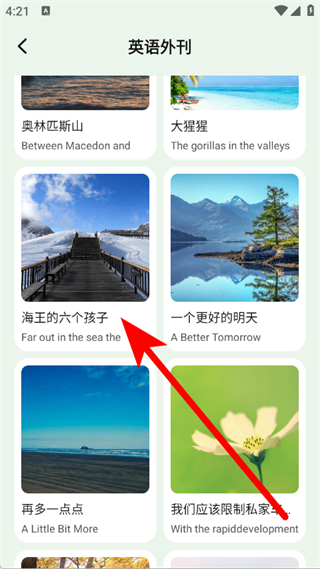 3、在英语外刊列表,选择目标内容,进入详情页面。