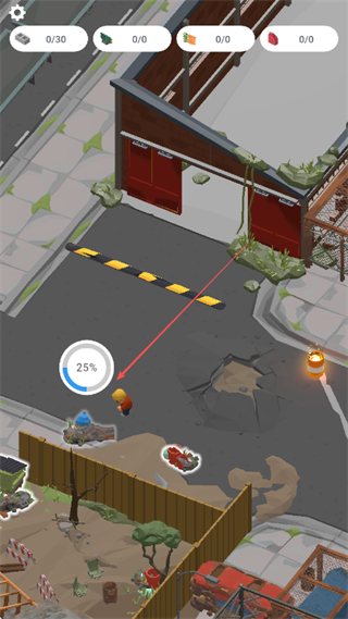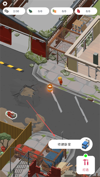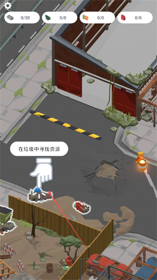 1、在废墟场景中寻找资源如建筑材料等,点击资源点进行采集,积累资源数量。