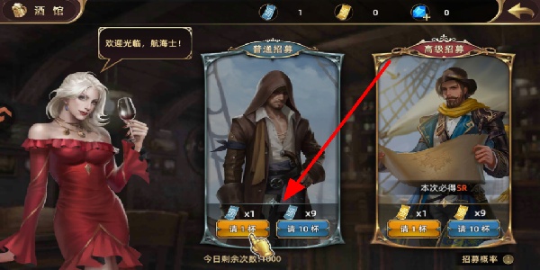 3、在酒馆进行招募,可选择普通或高级招募方式,获取不同品质的航海士,进一步壮大航海队伍的实力。
