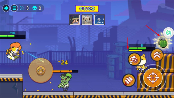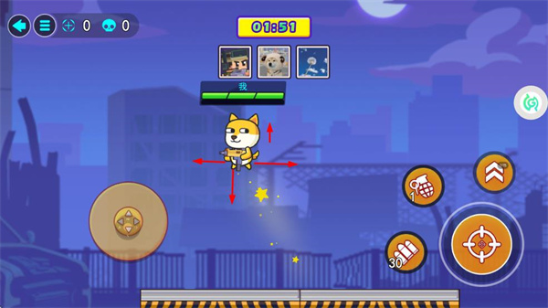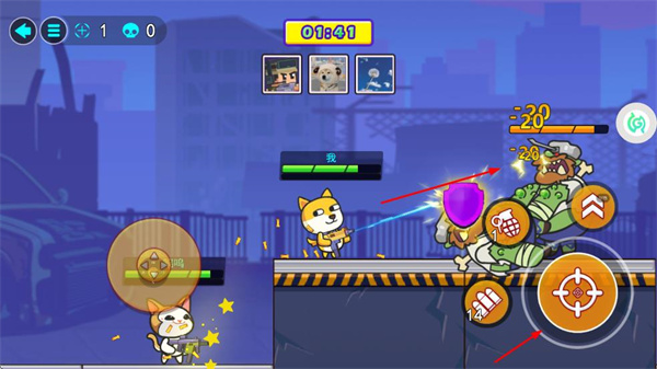 1、进入游戏后,通过左侧摇杆控制角色移动,右侧按钮操控跳跃、射击,开启战斗之旅。