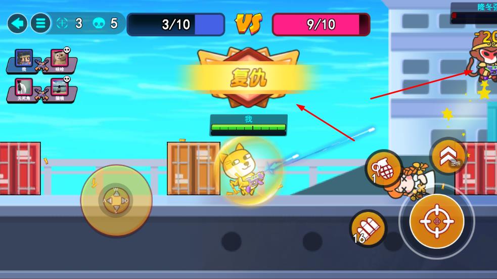 1、进入对战场景后,通过左侧摇杆控制角色移动,利用集装箱等掩体规划路线,开启对战进程。