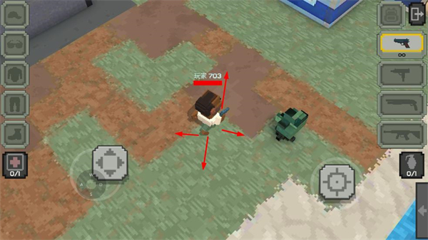 1、进入游戏场景后,通过左侧摇杆控制角色移动,在地图中探索,寻找武器、道具等资源。