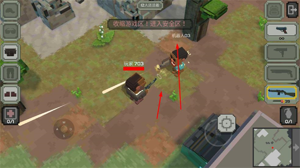 4、游戏过程中留意收缩游戏区!进入安全区的提示,及时进入安全区域,避免被毒圈淘汰,最终争取生存胜利。