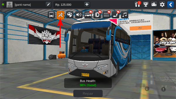 2、点击维修按钮保养巴士,巴士保养是维持性能的核心步骤,保养后可提升巴士的健康度,确保在运营过程中不会因故障抛锚。
