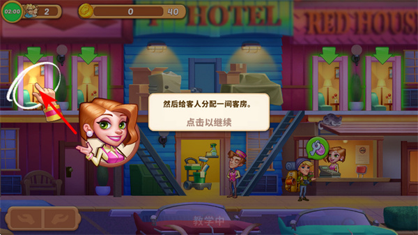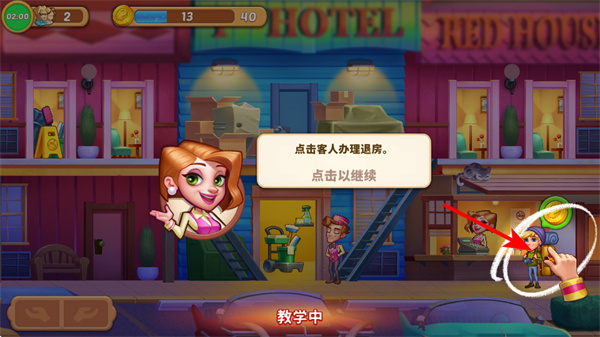 有详细的新手流程,在莫妮卡的帮助下迎接第一批客人,通过点击招呼客人、选择入住房间、安排退房打扫等简单操作,快速熟悉玩法。