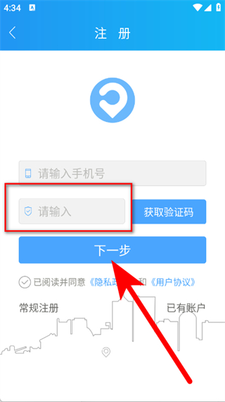 4、输入验证码,点击下一步按钮,完成账号注册。