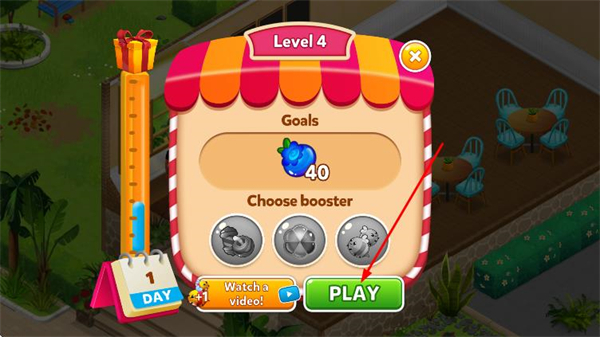 1、打开花式咖啡厅,选择并点击PLAY选项进入三消关卡内。