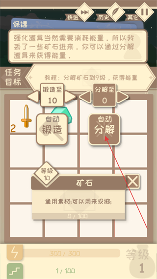 4、强化道具会消耗自身的能量,通过点击矿石进行分解来获取能量。