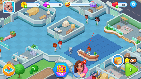 卡通温馨画风与医院主题巧妙融合,既保持了医疗场景的辨识度,又通过柔和风格降低距离感,让不同年龄段的玩家都能轻松接受,提升整体好感度。
