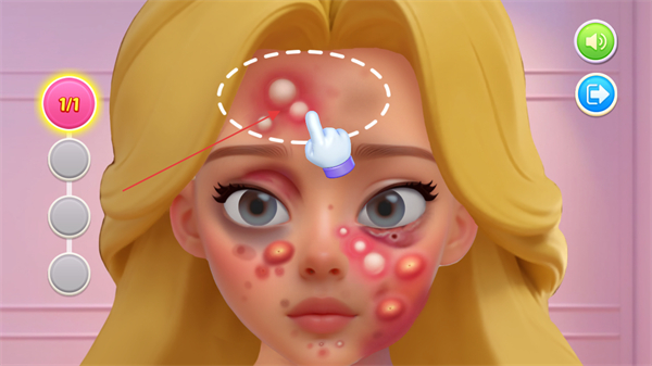 2、点击脸上的痘痘进行处理,取出里面的脓包并清洗干净。