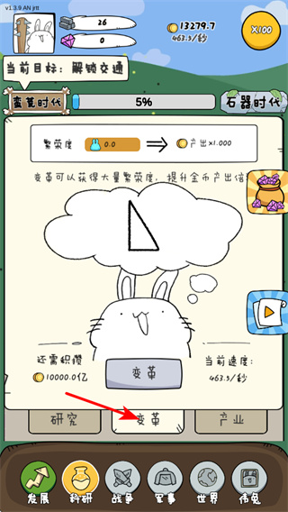 4、点击变革按钮,可触发文明变革进程,变革能大幅提升金币产出等收益,是文明进阶的关键操作,完成变革可推动文明进入新阶段,开启可能。