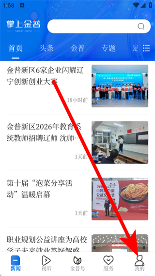 1、打开掌上金普,点击底部我的,进入个人中心页面。