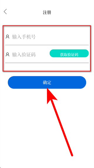 4、输入手机号,获取并输入验证码,点击确定,完成注册。