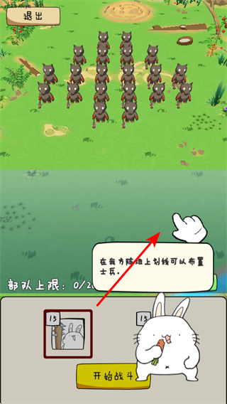 4、在军事战斗布局界面,按照提示在我方阵地上划线布置士兵,这是组建军队、提升战斗能力的关键操作,确保战斗胜利以获取更多发展资源。