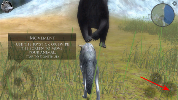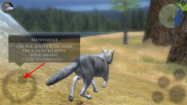 1、游戏中通过左侧虚拟摇杆或滑动屏幕来操控狼移动,这是探索地图、寻找资源与猎物的基础操作,移动时需注意场景中的地形和植被。