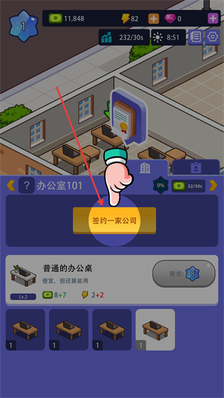 4、点击签约一家公司按钮,签约公司以开展业务即可开始发展。