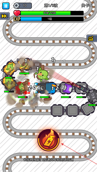 4、战斗中长按能量球图标,可触发火车冲刺,对轨道上的敌人造成大范围伤害,是应对密集敌人的关键手段。