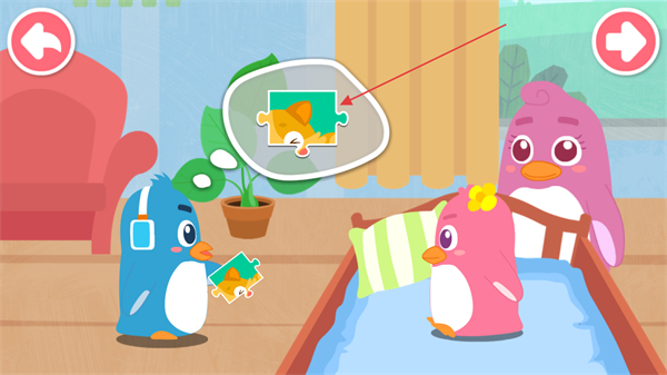 3、企鹅宝宝想要缓和妹妹之间的关系和她一起玩拼图,点击拼图和妹妹一起玩吧。