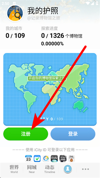 3、在我的页面,点击注册,进入iCity ID账号注册流程。