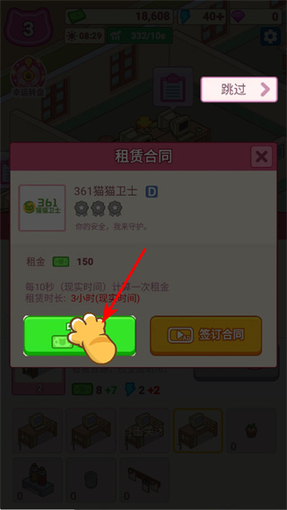 1、游戏中点击绿色按钮支付租金,可签订租赁合同开展合作,这是拓展业务的关键操作,支付时需关注租金金额和合作收益的平衡。