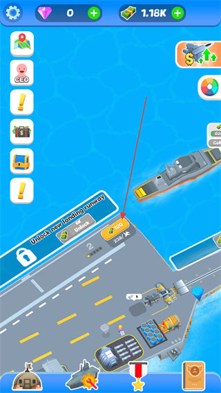 1、进入游戏后,玩家将成为航母舰队船长,点击飞机航道进行解锁。