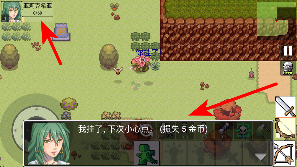 4、战斗中需关注左上角生命值,若生命值耗尽角色会死亡并损失金币,因此要合理规划策略。