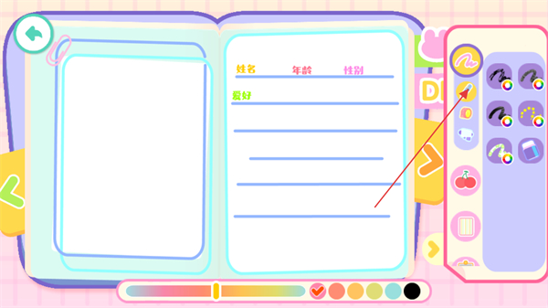 3、在右侧选择画笔和贴纸图案进行手账的编辑,可以填写上宝宝的相关信息。