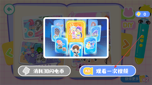 4、点击获得更多卡牌,可以通过消耗闪电币或是点击观看一次视频的方式获取。