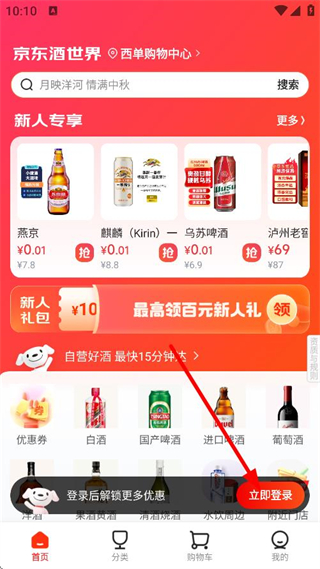 1、在京东酒世界首页,点击底部我的,点击立即登录。