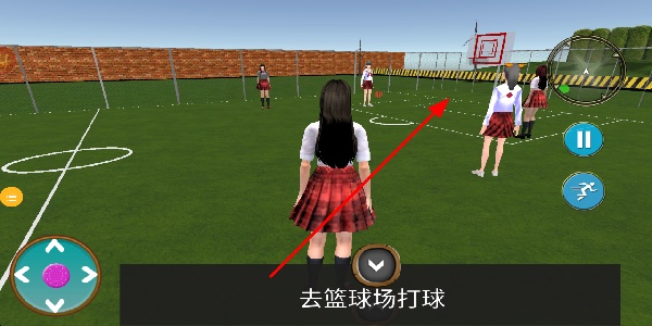 3、前往篮球场,在篮球场上参与打球活动,与同学互动,推进游戏的校园场景体验。