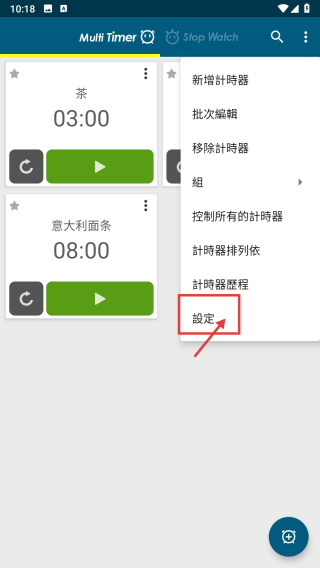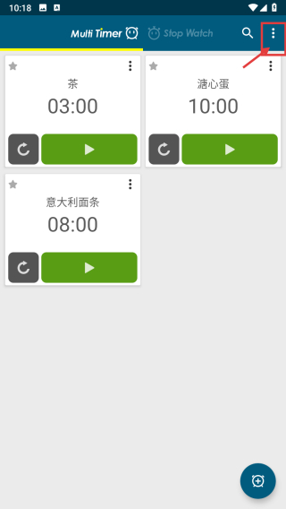 1、打开多计时器类APP,点击右上角三点菜单按钮,展开功能菜单。