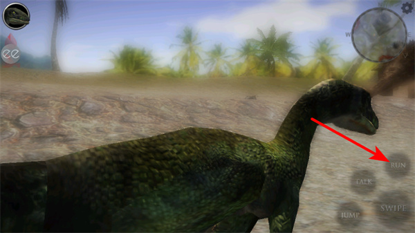 3、点击RUN按钮可让恐龙奔跑,这是快速移动的核心操作,奔跑时需在遇到危险或需要赶路使用。