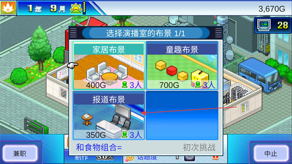 1、初次挑战食物类型的节目,根据经费选择一个演播室的布景环境。