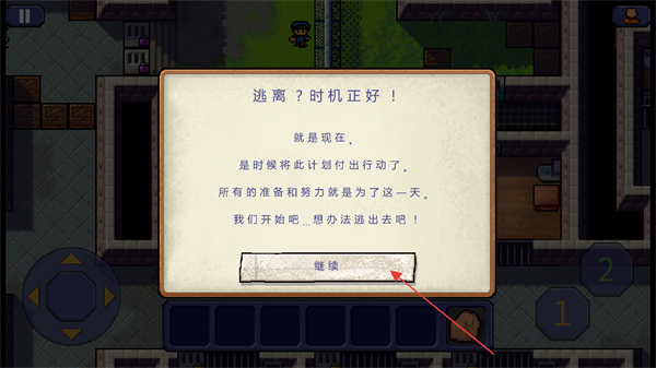 1、点击继续,开启逃离计划,准备想办法逃出去。
