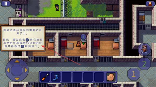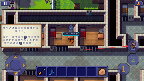 2、按提示捡起路障,放到标记位置,站在桌子上前往通风系统。