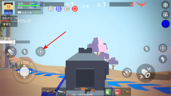 4、点击瞄准按钮开启瞄准模式,这是精准射击的关键操作,需在发现敌人后及时使用以提高命中率。
