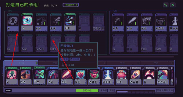 3、打造自己的卡组,选择并搭配不同功能的卡牌,根据卡牌的冷却时间、伤害等属性。