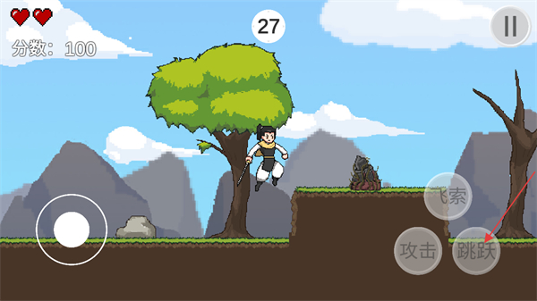 3、点击右下角跳跃键,控制角色进行跳跃障碍躲避攻击等操作。