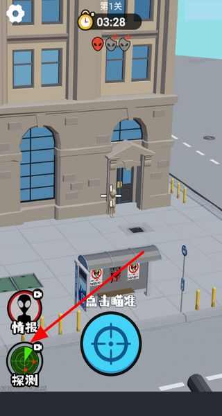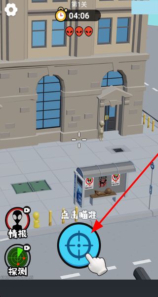 1、找到目标后点击瞄准按钮,进入瞄准状态,为射击做好准备,提升击中目标的精准度。