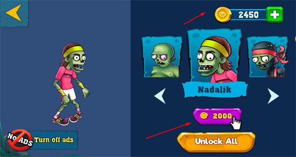 4、消耗金币解锁新的僵尸角色,丰富角色选择,提升游戏趣味性与战力。