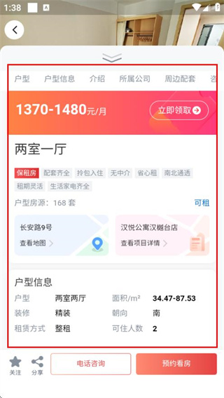 4、在房源详情页即可查看户型、价格等各种租房信息。