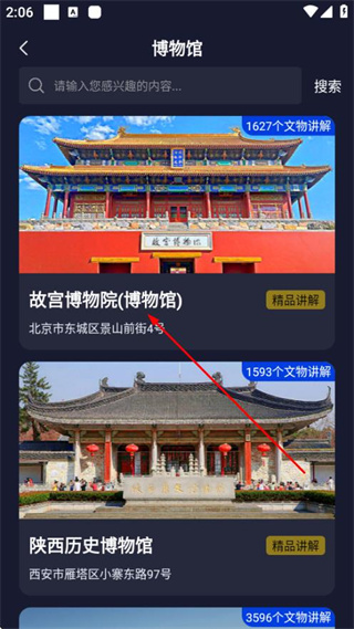 2、在博物馆列表中,点击感兴趣的条目,进入该博物馆的详情页面。