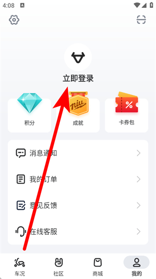 2、在我的页面,点击立即登录,进入登录注册页面。