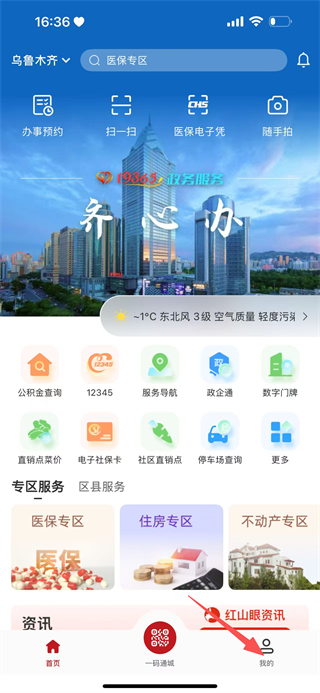 1、在政务APP首页,点击底部我的,进入个人中心页面。