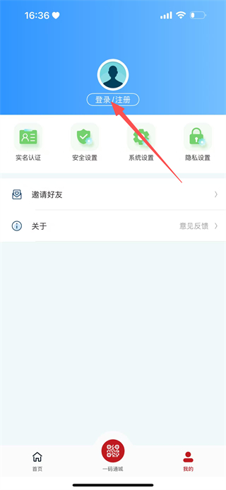 2、在个人中心页面,点击登录/注册,进入登录页面。