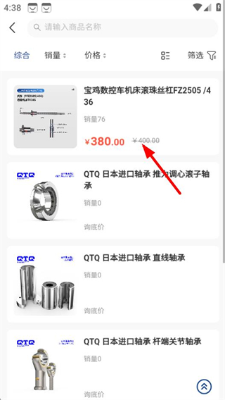 2、在配件商城页面,点击动力传动分类,进入对应商品列表页面。