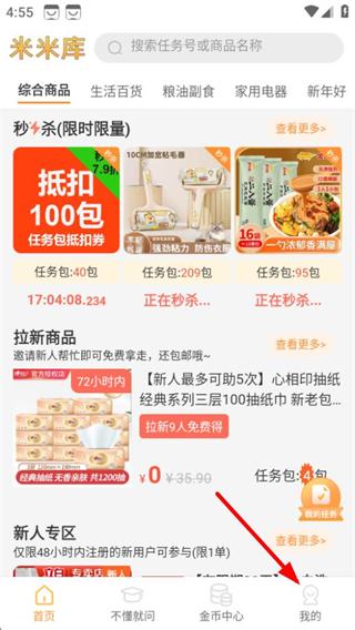 1、在米米库首页,点击右下角我的选项,进入个人页面。